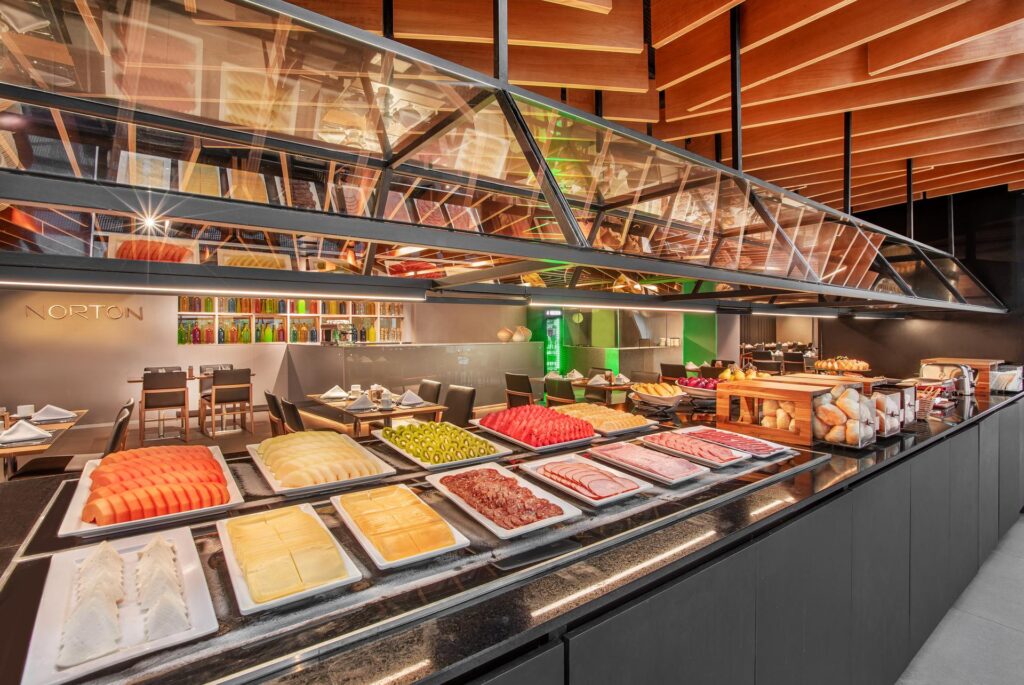 Um dos principais diferenciais dessa categoria é o lounge reservado aos hóspedes premium. É nesse espaço que acontecem o check-in e o check-out, em um ambiente mais tranquilo e exclusivo. O lounge oferece cafés selecionados, bebidas, snacks e happy hour ao longo do dia, além de uma área de trabalho com computadores e impressora.