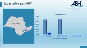 Enquanto o resultado auferido em 2025 mostrou 64,54% de ocupação hoteleira no Estado, a sondagem de expectativa para 2026 ficou em 60%. Ou seja: possível queda de 4,54%. Considerando a MRT Capital Paulista, a TO de 2025 alcançou 65%. E a expectativa para 2026 é de 60%. Por outro lado, em se tratando da MRT Capital Expandida, resultado de 2025 exibiu TO de 55%, enquanto a sondagem de expectativa para 2026 chega a 60%.