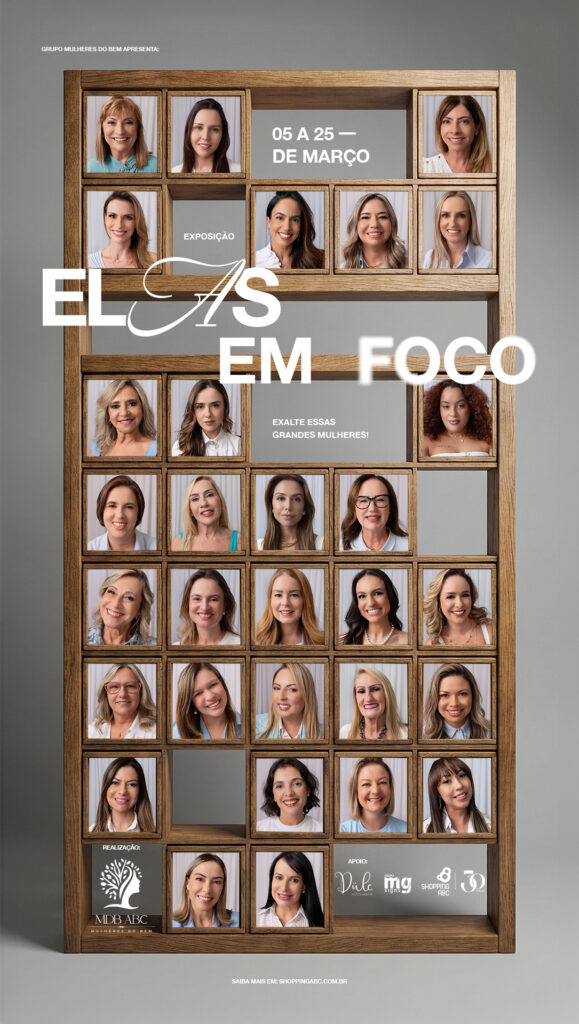 Parceiro histórico do coletivo, o Shopping ABC abraça a exposição como parte das comemorações de seus 30 anos. Para Flávia Tegão, gerente de marketing do empreendimento, a iniciativa reforça o papel do shopping como espaço de convivência, encontros e valorização das pessoas.” Acreditamos na força das histórias reais e reunir 30 trajetórias tem um significado especial em um ano em que celebramos três décadas. A exposição destaca quem constrói legados todos os dias e demonstra a força e o protagonismo feminino como agentes de transformação. Para nós, é uma honra dar visibilidade às mulheres que contribuem diariamente para o desenvolvimento da nossa região junto com a gente”, destaca