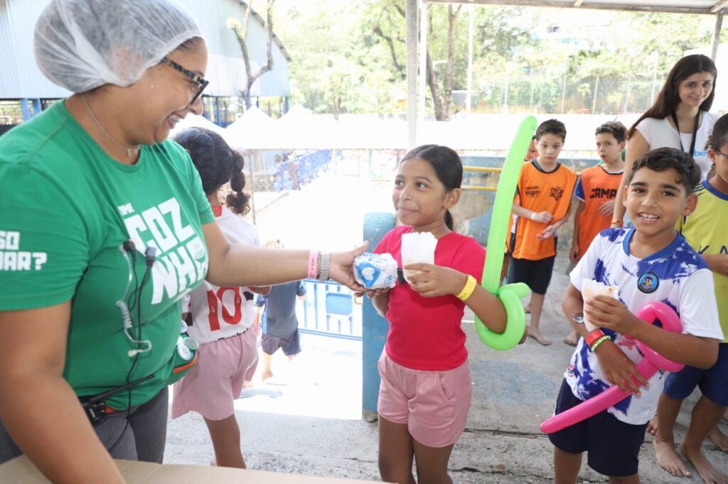 A equipe da cozinha fica responsável pelos lanches, o pessoal do apoio assegura toda a logística do evento, a recreação toma conta das brincadeiras, enquanto a turma do sorriso de amor faz atendimento odontológico à criançada.