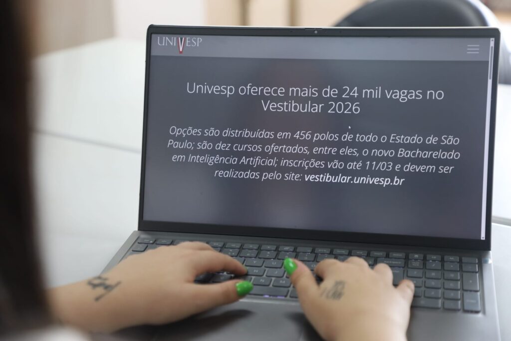 – O prazo de inscrições para os cursos gratuitos da Universidade Virtual do Estado de São Paulo (Univesp) entram na reta final. Será possível se inscrever apenas até a próxima quarta-feira (11) em um dos cursos de bacharelado nos eixos Computação – com a opção inédita em Inteligência Artificial – e Negócios e Produção, além de cursos de licenciatura (para quem deseja dar aula) de Pedagogia, Matemática e Letras. As inscrições, com taxa de R$ 47,59, devem ser feitas pelo site vestibular.univesp.br.