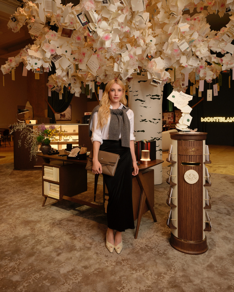 No centro do espaço, erguia-se a Escrivaninha Montblanc, a instalação emblemática introduzida pelo Diretor Artístico Marco Tomasetta, que se tornou uma expressão central da filosofia criativa da Maison. Mais do que um objeto funcional, a escrivaninha é apresentada como o ponto de partida de ideias, onde muitas jornadas criativas e literárias começam e onde a escrita se torna um ato de autoexpressão.