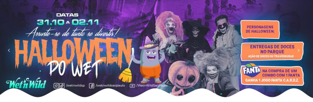 Com cenografia especial, trilha sonora e ambientação fotogênica, o Halloween no Wet reforça a vocação do parque como plataforma de experiências: tecnologia de operação a serviço da diversão, serviços de hospitalidade e múltiplos espaços moduláveis para receber públicos, projetos e marcas. Nesta edição, o Wet’n Wild abriga a ação promocional Fanta C.A.R.D.Z., ferramenta de engajamento que transforma a época do Dia das Bruxas em uma disputa de cartas com elementos de terror e humor — dinâmica perfeita para criar interação, gerar lembrança e ampliar o alcance nas redes sociais, sem perder o foco na família e na segurança.