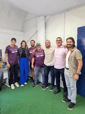 Da esquerda para a direita: Melk Nunes (Head Mídia), Sandra Chiamulera (Visite Guarujá), Winícius Silva (Diretor Técnico) e Thales Antoniolli (Diretor de Eventos), Fabio Lima (diretor de esportes e patrimônio), José Roberto Leopoldino Galvão (Secretário de Esportes), João Victor Couto Ferramacho (Visite Guarujá)
