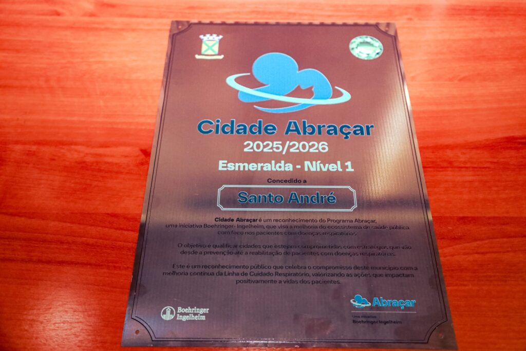 – Após redução de 32,54% no número de internações por doenças respiratórias, o município de Santo André recebeu o selo Esmeralda e o título de Cidade Abraçar, certificação que reconhece cidades comprometidas com a melhoria do diagnóstico e o cuidado de pacientes com Doença Pulmonar Obstrutiva Crônica (DPOC). A cerimônia de entrega da certificação foi realizada na manhã desta sexta-feira (30), no Salão Burle Marx do Paço Municipal, e marca o cumprimento de mais de 80% dos critérios técnicos definidos pelo programa.