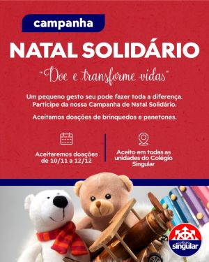Até o dia 12 de dezembro, o Colégio Singular e o cursinho Singular Anglo promovem a tradicional Campanha de Natal, uma iniciativa que reforça o compromisso social da instituição com as comunidades do Grande ABC.