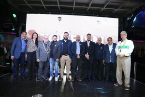 Aristides Cury e Walter Teixeira, com representantes das organizações apoiadoras: Alesandro Freire, da Correr com Propósito; Cristeny Benjamin (Orna); Luciano Oliveira da Silva (Movida); Fabio Zelenski (Visite São Paulo Convention Bureau); Wellington Marques (SPITI Seguros); Diego Uva (Conta Simples), Márcio Guerreiro (MG Eventos), Luiz Henrique Miranda, Diretor de Comunicação e Marketing da Skål Internacional São Paulo e de Comunicação Relações Públicas da Skål Internacional Brasil)